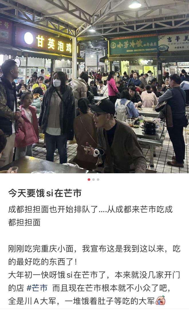 不光是热门景点爆火,因为疫情沉寂了三年的云南芒市,久违地接待了大批游客:由于大年初一初二很多餐馆没开门,从成都过去旅游的朋友居然在成都担担面门前排起了队。